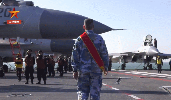 走上甲板觀看艦載機(jī)起降