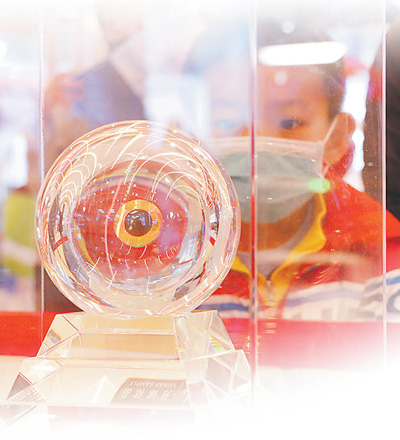 國(guó)家“十三五”科技創(chuàng)新成就展上展出的月球樣品。
