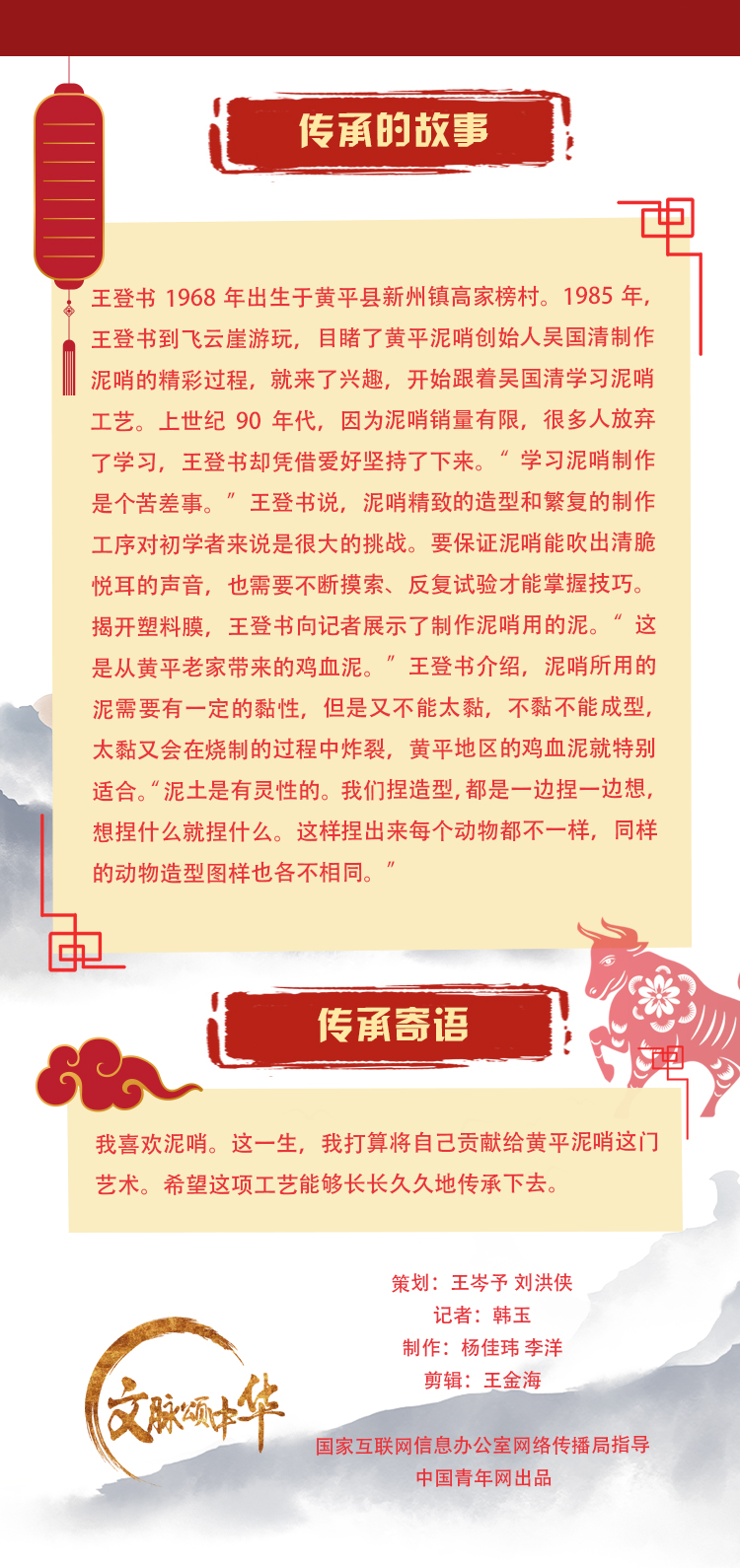 今年以來,中國青年網持續(xù)推出“文脈頌中華·非遺傳承新生代”網絡主題活動【傳承者說】系列報道,并在微博平臺發(fā)起#青春遇見非遺#話題,廣大網友可以通過報道了解更多非遺知識、感受中華優(yōu)秀傳統(tǒng)文化魅力,更可以通過留言、拍照等形式,分享自己關于非遺的記憶,一起做非遺傳承的新生代。