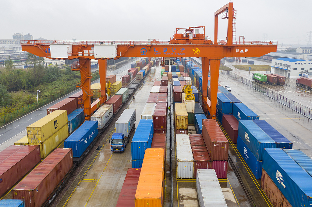 一批貨物正在裝車(chē),準(zhǔn)備從中歐班列金東平臺(tái)發(fā)往哈薩克斯坦