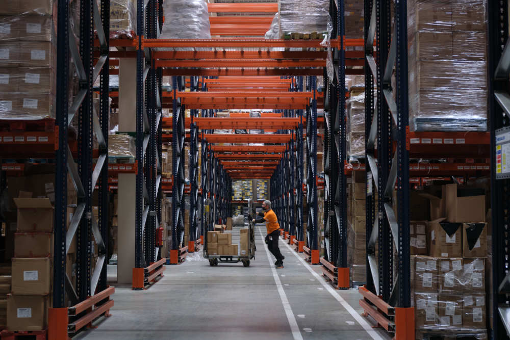 ↑ 2021年11月11日,工作人員在西班牙瓜達(dá)拉哈拉市的菜鳥網(wǎng)絡(luò)所設(shè)立的海外倉(cāng)中工作。