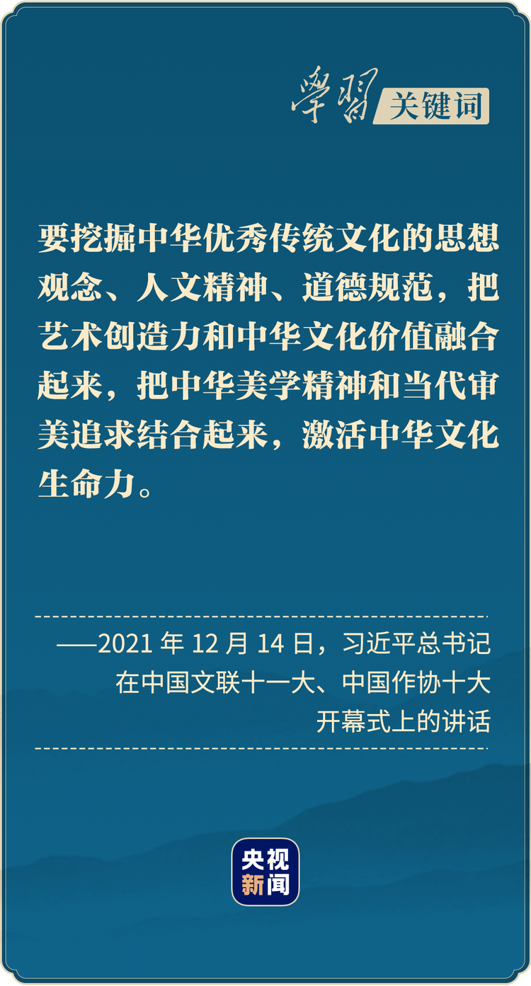 中華文化博大精深,為中華民族克服困難、生生不息提供了強大精神支撐?倳浵M麖V大文藝工作者重視發(fā)展民族化的藝術內容和形式,繼承發(fā)揚民族民間文學藝術傳統(tǒng),拓展風格流派、形式樣式,在世界文學藝術領域鮮明確立中國氣派、中國風范。