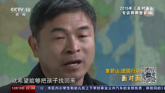 郭剛堂:我叫郭剛堂,山東聊城人,我的孩子1997年被人販子給拐掉了,漠河和海南我是坐車坐輪渡過(guò)去的,就新疆西藏我沒(méi)去過(guò),我們也沒(méi)有過(guò)高的奢望,就希望能夠把孩子找回來(lái)。