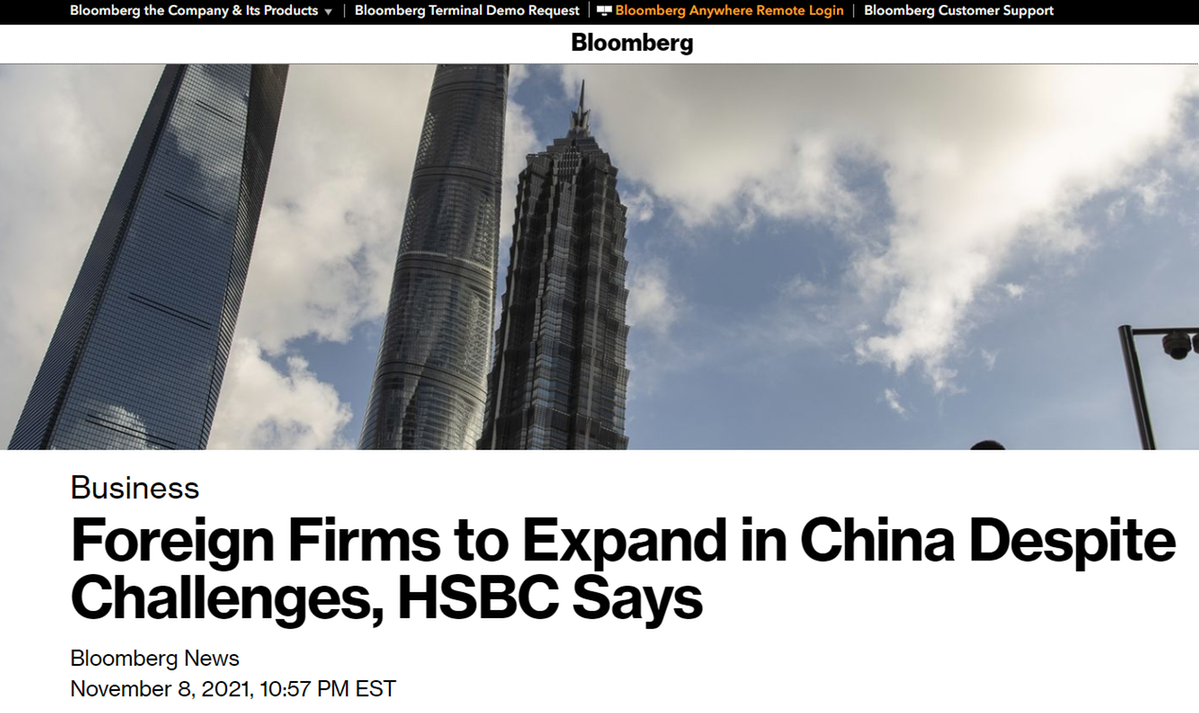 彭博社報(bào)道稱,匯豐銀行對(duì)2174家外資企業(yè)的調(diào)查顯示,97%的受訪企業(yè)表示,他們打算繼續(xù)擴(kuò)大在華投資,因?yàn)橹袊?guó)擁有龐大的市場(chǎng)、經(jīng)濟(jì)持續(xù)增長(zhǎng)的預(yù)期以及發(fā)達(dá)完善的供應(yīng)鏈。其中19%計(jì)劃將25%以上的盈利投資于中國(guó),另有42%計(jì)劃將11%至25%的利潤(rùn)投資于中國(guó)。
