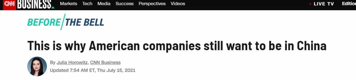 美國(guó)有線電視新聞網(wǎng)7月15日?qǐng)?bào)道,中國(guó)最新的經(jīng)濟(jì)數(shù)據(jù)凸顯了為什么對(duì)許多美國(guó)公司來(lái)說(shuō),留在中國(guó)發(fā)展是值得的。