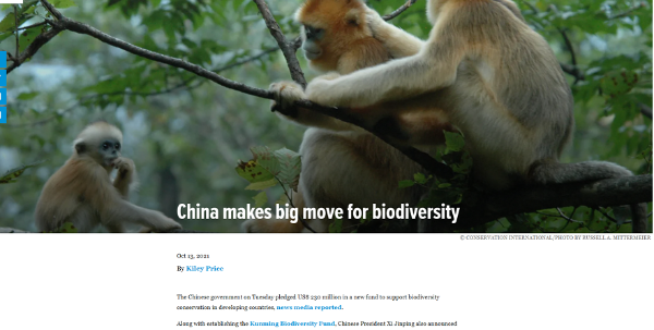 國(guó)際環(huán)保組織保護(hù)國(guó)際基金會(huì)(Conservation International)13日在官網(wǎng)發(fā)表文章稱,中國(guó)在生物多樣性方面邁出了重大步伐。