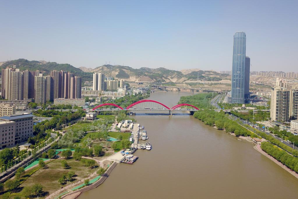 這是5月8日拍攝的黃河蘭州段景色(無人機照片)。新華社記者范培珅攝