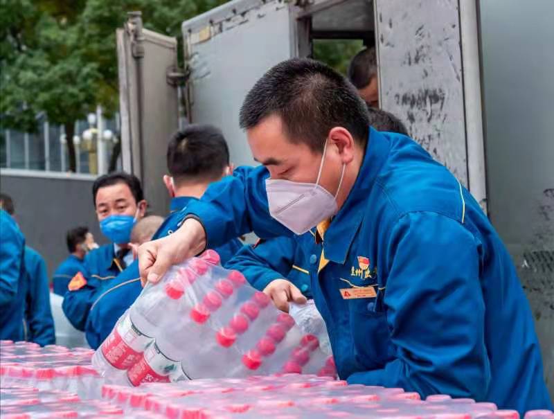 10月25日,蘇彪(右一)在蘭州市運送防疫物資。(受訪者供圖)
