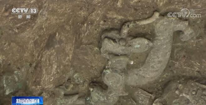 三星堆遺址祭祀?yún)^(qū)考古工作隊 趙昊:有點(diǎn)像1號神樹上面有一條龍是從神樹上面向下,從天而降的那個時候身體是朝上的。我們現(xiàn)在推測這個器物并不是全部的部分,而只是一個更大器物的一個基座或者底部的部分。