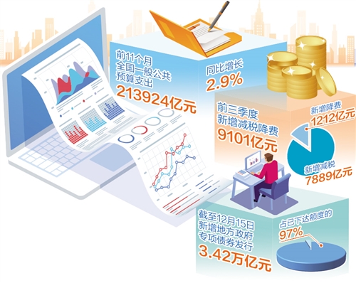 日前召開的中央經(jīng)濟(jì)工作會(huì)議明確,明年繼續(xù)實(shí)施積極的財(cái)政政策,積極的財(cái)政政策要提升效能,更加注重精準(zhǔn)、可持續(xù)。一系列措施正在發(fā)力,護(hù)航宏觀經(jīng)濟(jì)大盤平穩(wěn)前行。