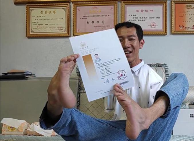 彭超用腳書(shū)寫(xiě)了熱血人生