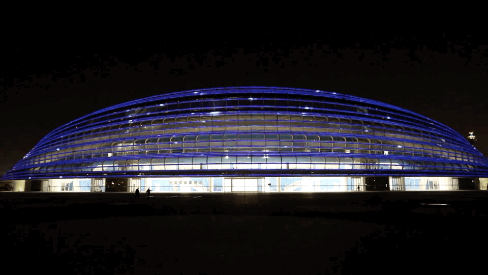 國家速滑館玻璃幕墻外有22條高低盤旋、似環(huán)繞飄舞的“冰絲帶”,內(nèi)部集成的夜景照明系統(tǒng)開啟后,絲帶曼舞、輕盈躍動、異彩紛呈,展現(xiàn)了速度滑冰運動的速度與激情。