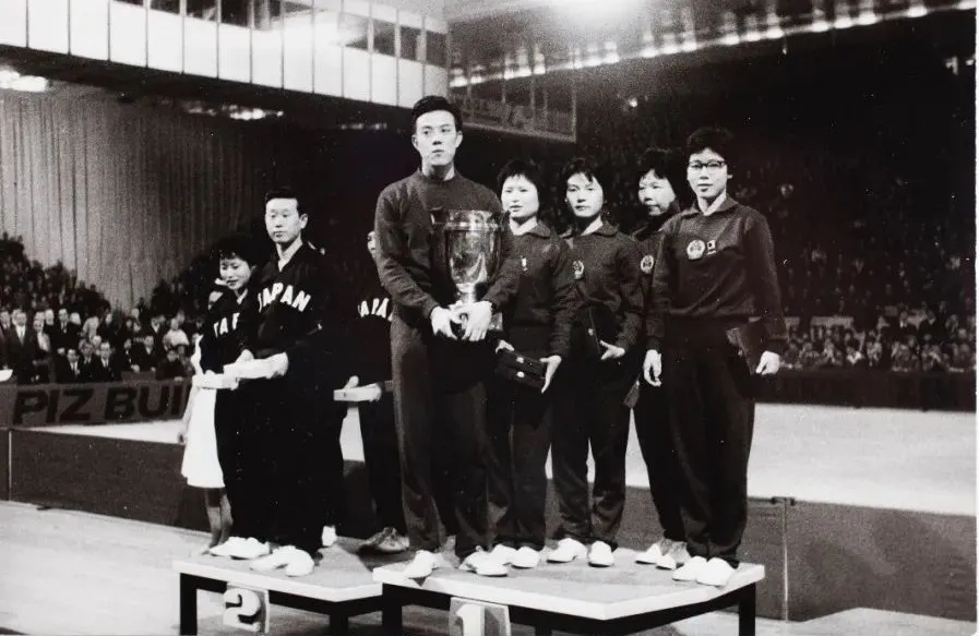 1965年4月19日,容國團(tuán)帶領(lǐng)中國乒乓球女隊(duì)奪得第28屆世乒賽女子團(tuán)體冠軍。