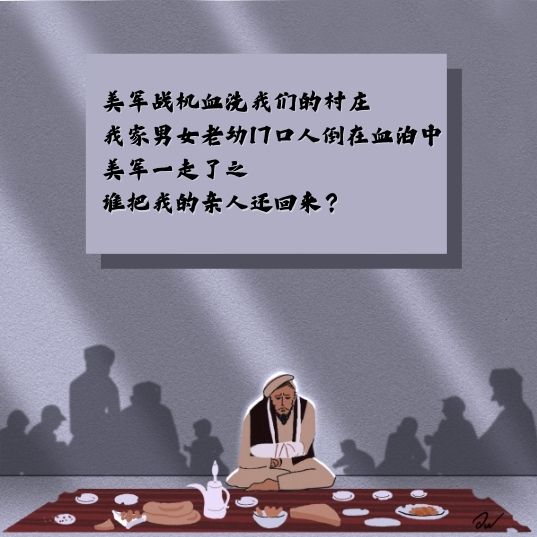 6條人命還都是孩子,在附近中、小學(xué)上學(xué)。幸存的家人至今無法從精神創(chuàng)傷中恢復(fù),孩子聽到槍聲和爆炸聲還會(huì)害怕甚至哭泣!八麄?nèi)匀徊桓胰ド蠈W(xué),美國人殺戮的那一幕在他們腦海中揮之不去。”阿比德說。