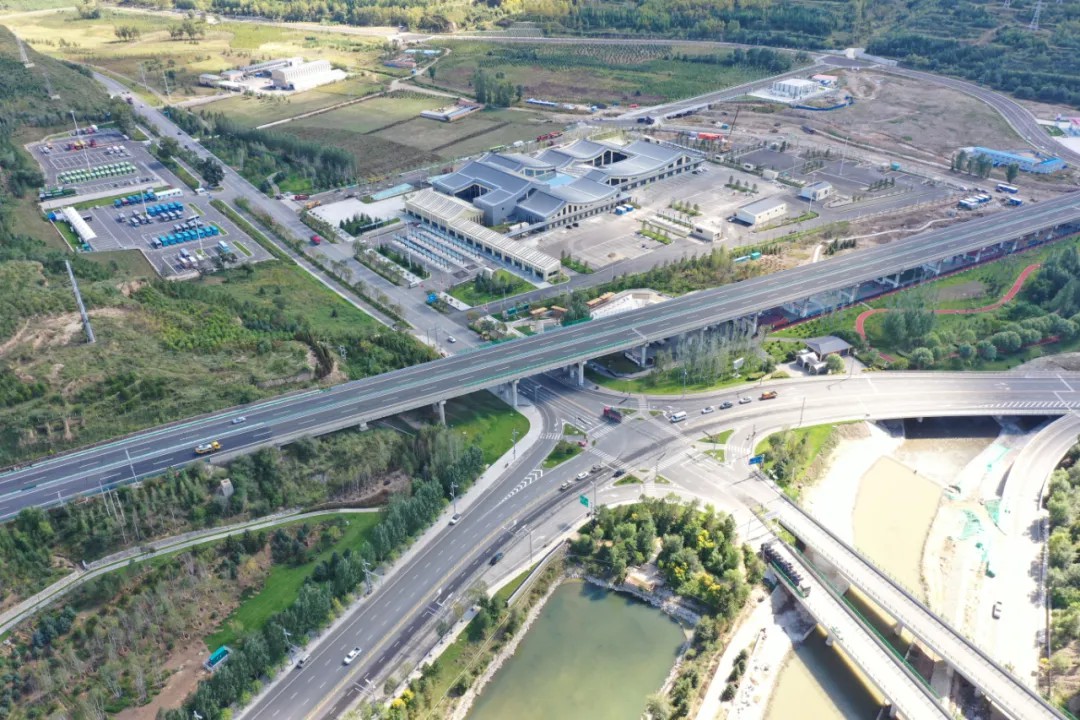 這是2021年10月18日拍攝的延崇高速?gòu)埣铱谑谐缍Y區(qū)太子城互通式立交橋。新華社記者 楊世堯攝