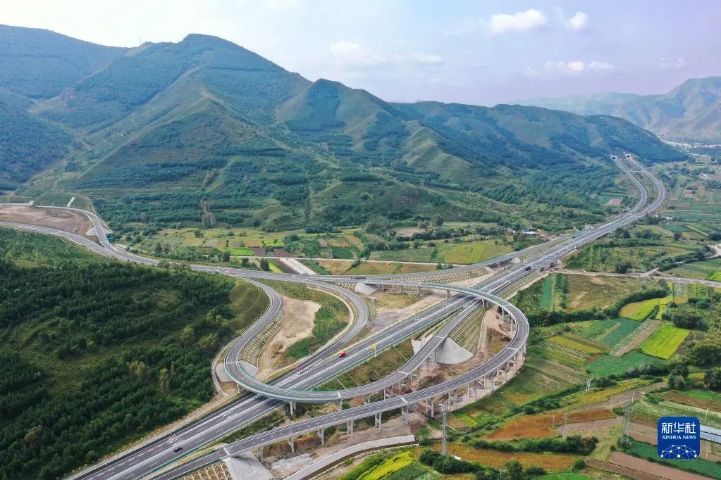 這是2021年8月31日拍攝的延崇高速河北段延伸工程張家口市崇禮白旗互通樞紐(無人機(jī)照片)。新華社發(fā)(武殿森 攝)