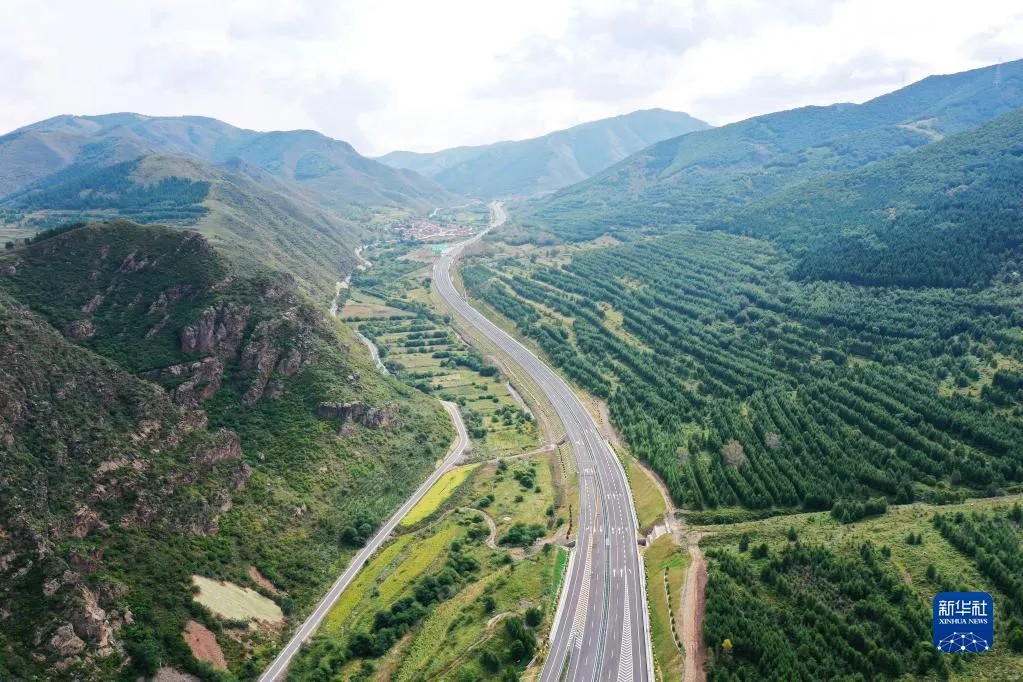 這是2021年8月31日拍攝的延崇高速河北段延伸工程部分路段(無人機(jī)照片)。新華社發(fā)(武殿森 攝)