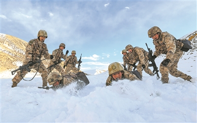 1月4日,陸軍某團官兵在雪地中開展單兵戰(zhàn)術(shù)比武。劉曉東攝