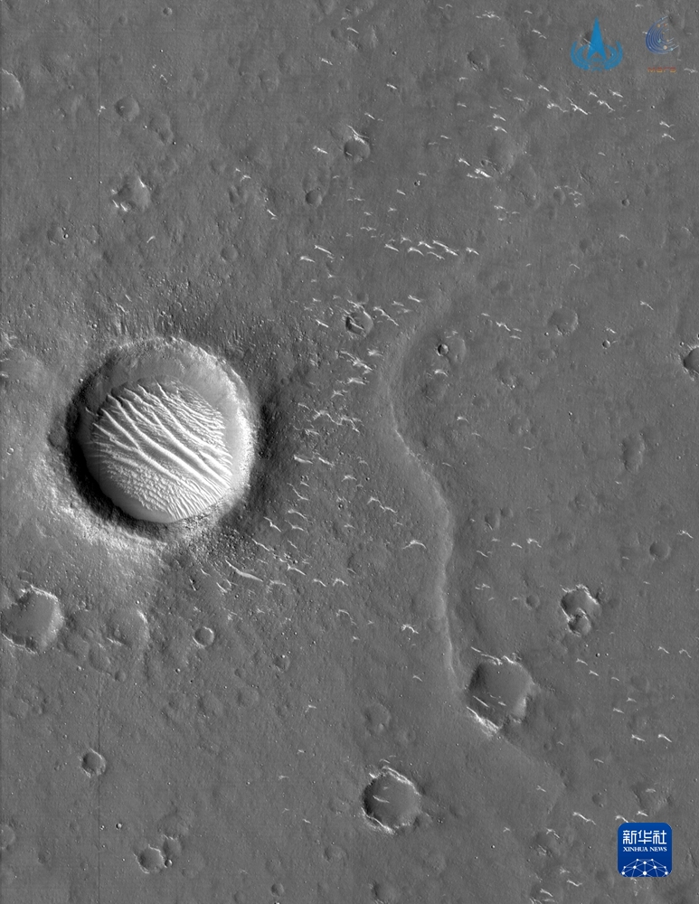 2021年3月4日,國(guó)家航天局發(fā)布由我國(guó)首次火星探測(cè)任務(wù)天問(wèn)一號(hào)探測(cè)器拍攝的高清火星影像圖。新華社發(fā)(國(guó)家航天局供圖)