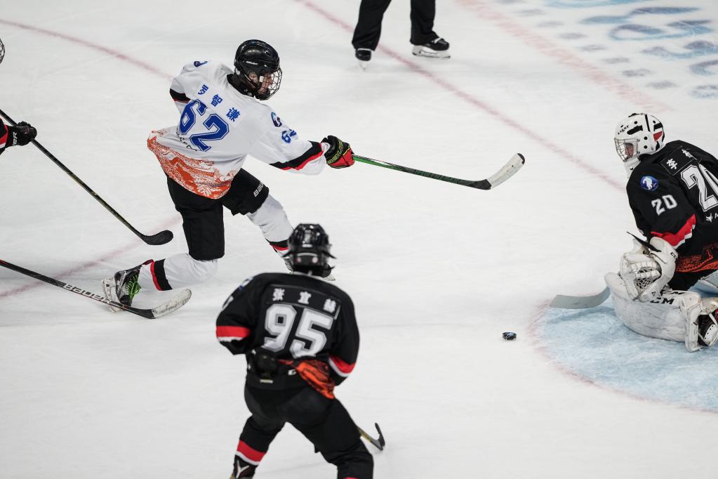 2021年4月4日,五棵松體育中心,運(yùn)動(dòng)員在冰球項(xiàng)目測(cè)試活動(dòng)中。新華社記者 彭子洋 攝