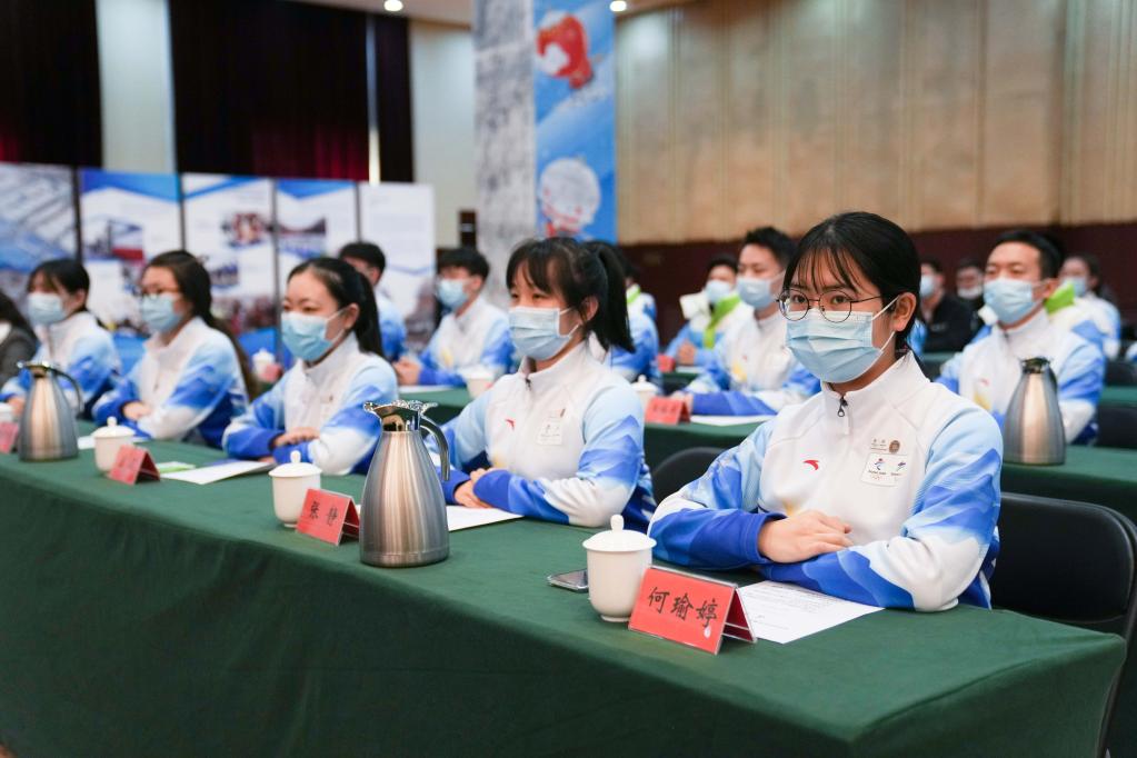 2021年12月31日,志愿者代表參加北京2022年冬奧會(huì)和冬殘奧會(huì)誓師動(dòng)員大會(huì)。新華社記者 鞠煥宗 攝
