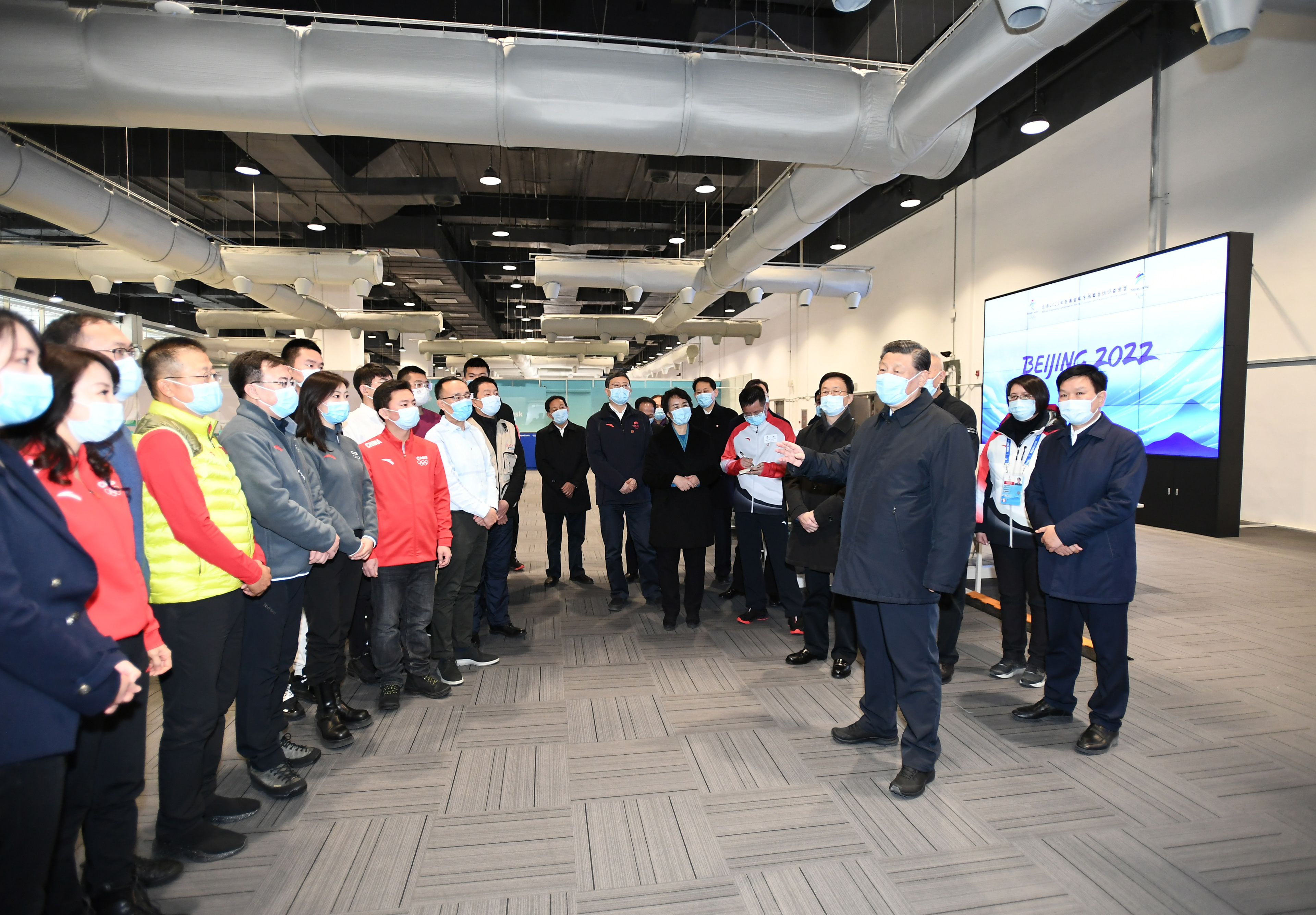 1月4日,中共中央總書記、國(guó)家主席、中央軍委主席習(xí)近平在北京冬奧會(huì)、冬殘奧會(huì)主媒體中心媒體工作間,同正在做準(zhǔn)備的國(guó)內(nèi)媒體記者代表親切交流。新華社記者 謝環(huán)馳 攝