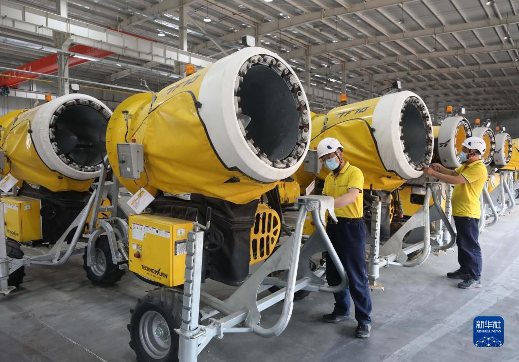這是張家口高新區(qū)冰雪運動裝備產(chǎn)業(yè)園內(nèi)一家冰雪設備企業(yè)的工人在車間查驗造雪機質(zhì)量(2021年6月23日攝)。新華社記者 楊世堯 攝