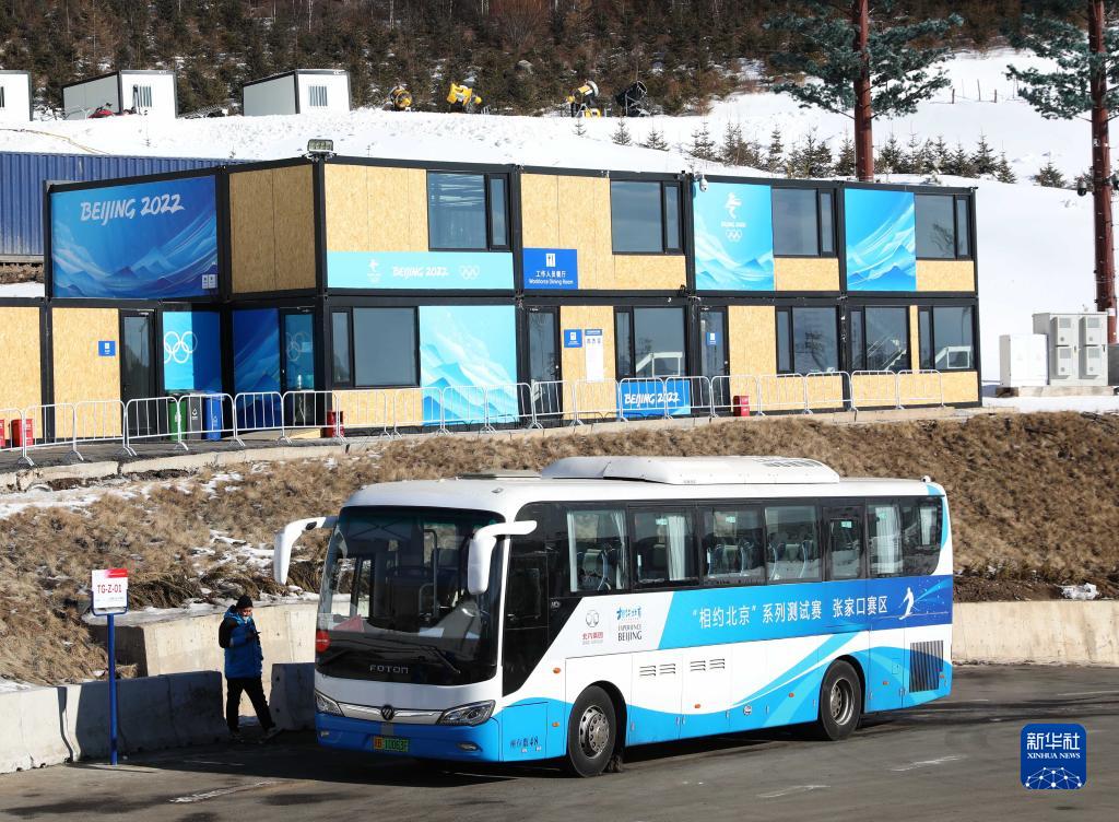 2022年1月6日,在張家口市崇禮云頂滑雪公園,一名工作人員準備乘坐氫燃料大巴出行。新華社記者 楊世堯 攝