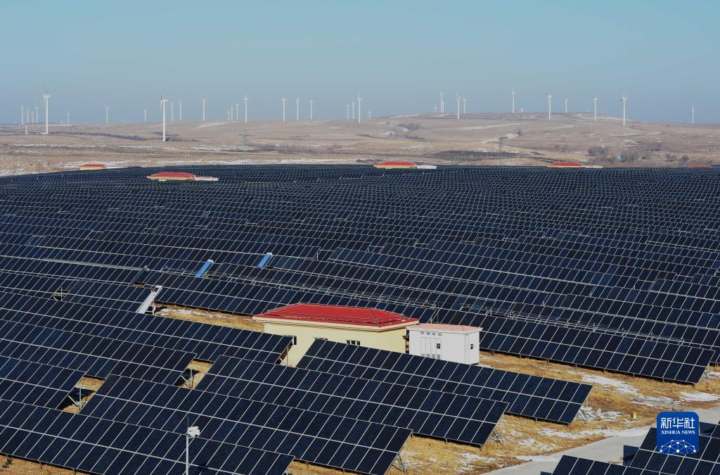 這是張家口壩上地區(qū)的國家風光儲輸示范電站內(nèi)的風光互補發(fā)電場(2017年12月27日攝)。新華社記者 楊世堯 攝