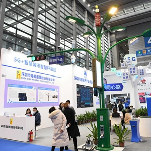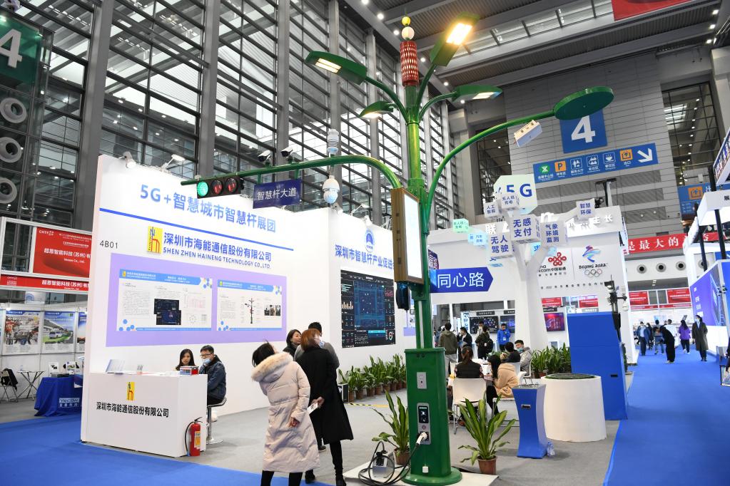 這是2021年12月27日拍攝的第二十三屆高交會上展出的多功能智慧桿。(新華社記者梁旭攝)