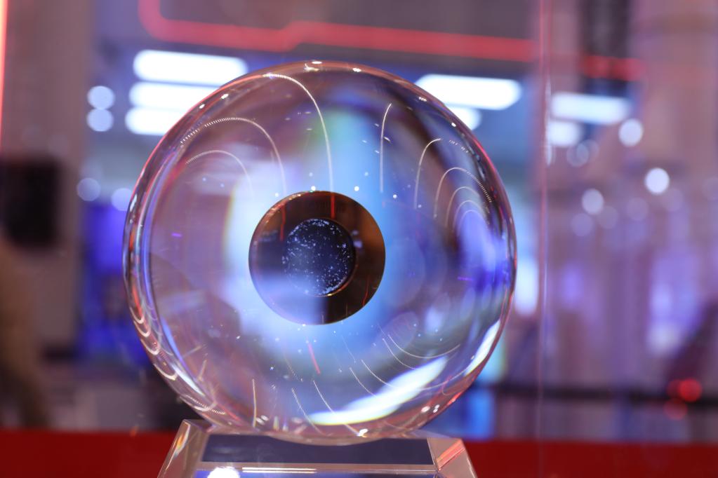 2021年10月21日在北京展覽館拍攝的科技創(chuàng)新成就展展出的月壤樣品。(新華社記者金立旺攝)