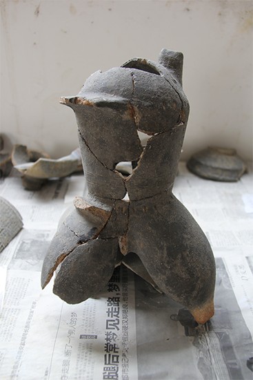 三個扁袋足、頂端還做成了鳥頭形象的陶盉。受訪者供圖