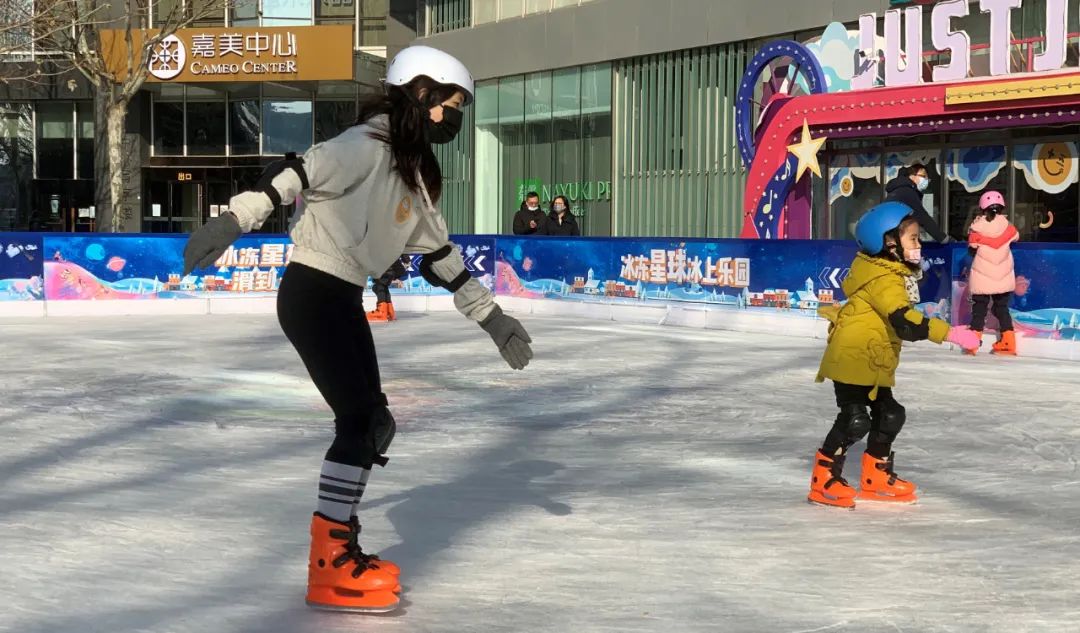 2022年1月1日,市民在北京望京一處室外冰場活動(手機(jī)照片)。新華社記者 王艷剛 攝