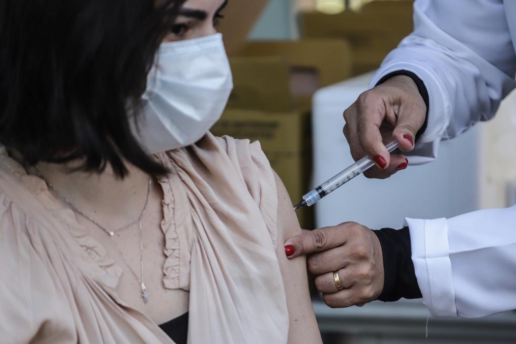 2021年7月25日,巴西圣保羅市一名女子接種新冠疫苗。(新華社發(fā))
