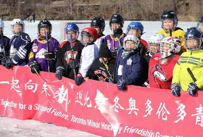 加拿大多倫多舉辦"冰娃弄春迎冬奧"湖面冰球交流活動(dòng)