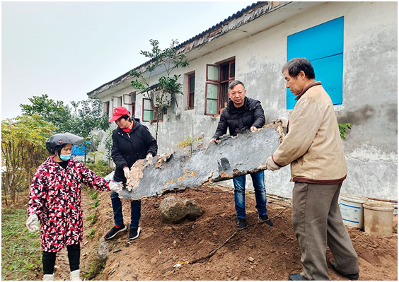劉擁軍(右二)帶領群眾整治居住環(huán)境。