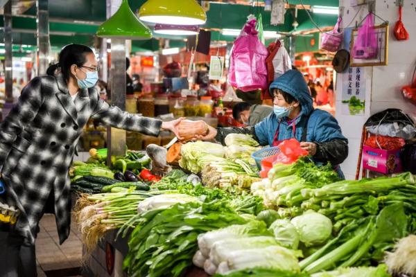 2021年12月27日,市民在東興市一處菜市場內(nèi)購買蔬菜。新華社記者 曹祎銘 攝