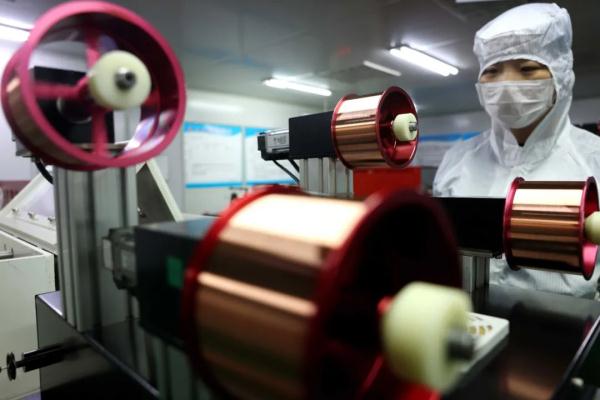 2021年10月14日,在安徽省合肥市瑤海區(qū)都市科技工業(yè)園,工人在鍵合絲生產(chǎn)車間內(nèi)工作。新華社發(fā)(解琛 攝)