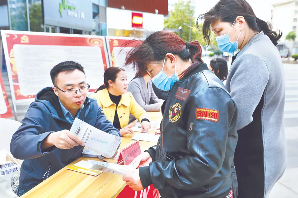 江蘇省連云港市海州區(qū)紀(jì)委監(jiān)委開展信訪宣傳專項(xiàng)行動(dòng),在鄉(xiāng)鎮(zhèn)集市、街道人流量大的地方現(xiàn)場接訪,傾聽群眾心聲,掌握第一手社情民情。圖為該區(qū)紀(jì)檢監(jiān)察干部向群眾講解信訪舉報(bào)受理流程。張孟瑞 攝