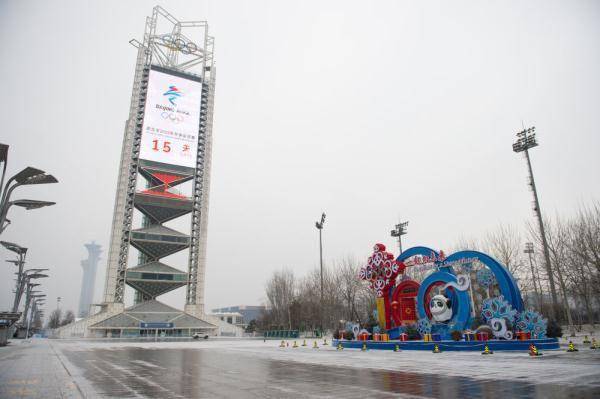 1月20日,位于北京奧林匹克公園內的北京冬奧會倒計時牌和冬奧主題景觀。新華社記者陳鐘昊攝