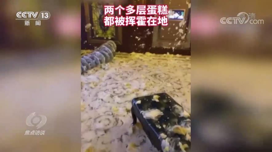 這是發(fā)生在多地聚會上的蛋糕大戰(zhàn),從畫面上我們可以看到,多層奶油蛋糕被打翻在地,只剩下一個歪歪扭扭的空架子,一群人把蛋糕當(dāng)作玩具,相互投擲取樂,弄得渾身上下都是奶油蛋糕。由于地面滿是奶油,太滑,人甚至無法站立,只能坐在地上。包間內(nèi)的家具、家電、地毯無一幸免,令在場的工作人員震驚不已。