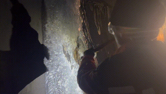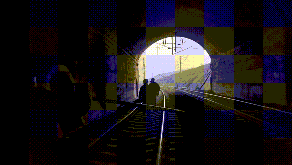 隧道里越走越黑,工人不但要用強(qiáng)光手電檢查拱頂和側(cè)壁,還要注意腳下——扣件、軌枕、電纜盒很容易把人絆倒。