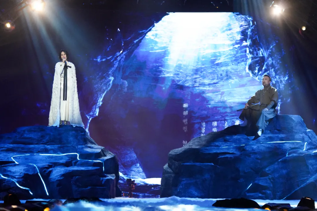 尚雯婕與都楞扎那合作帶來歌曲《天問》,在流行音樂與傳統(tǒng)呼麥的表演融合中, 從屈原的《天問》出發(fā),叩問蒼穹,探索宇宙,向中國(guó)航天致敬。