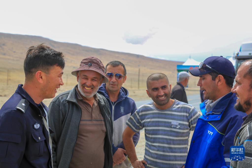 2019年6月11日,位于新疆塔什庫爾干塔吉克自治縣的卡拉蘇出入境邊防檢查站的民警向塔吉克斯坦司機(jī)介紹出入境相關(guān)事宜。新華社發(fā)(黃歡 攝)
