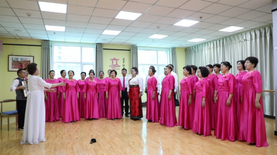 轄區(qū)居民組成的合唱隊正在排練。人民網(wǎng) 張皓芃攝