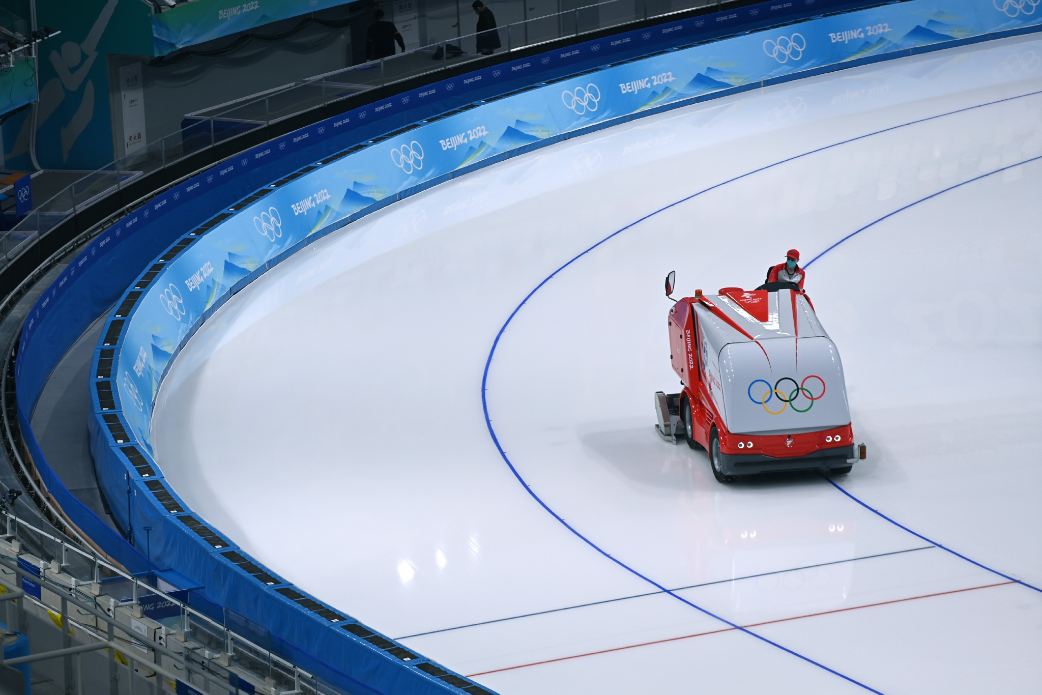 1月28日,澆冰車在國家速滑館工作。新華社記者 武巍 攝