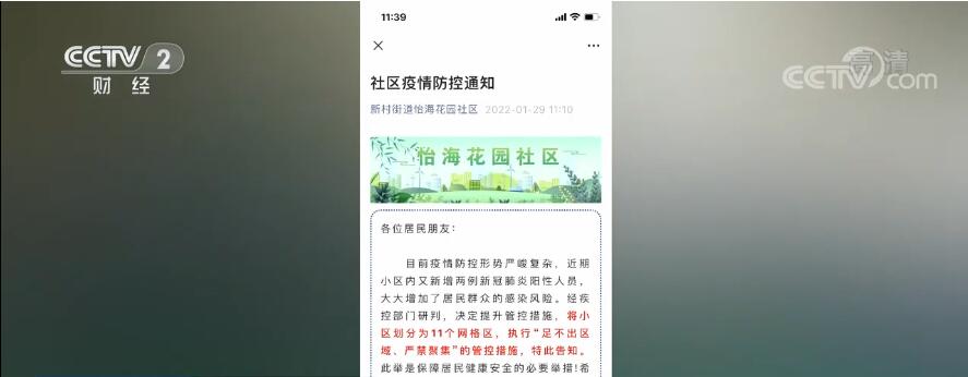 央視網(wǎng)消息:昨天(1月29日)11時左右,北京豐臺新村街道怡;▓@社區(qū)發(fā)布通知,近期小區(qū)內(nèi)又新增兩例新冠肺炎陽性人員,大大增加了居民群眾的感染風險。經(jīng)疾控部門研判,決定提升管控措施。與此同時,社區(qū)也推出了多項措施,保障居民度過一個祥和的春節(jié)。