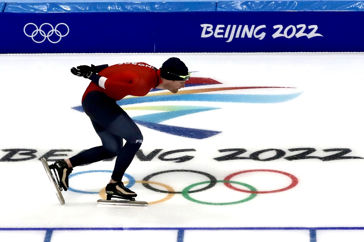 1月30日,在國家速滑館“冰絲帶”,運動員在進行賽前訓練。 中國日報記者 張威 攝