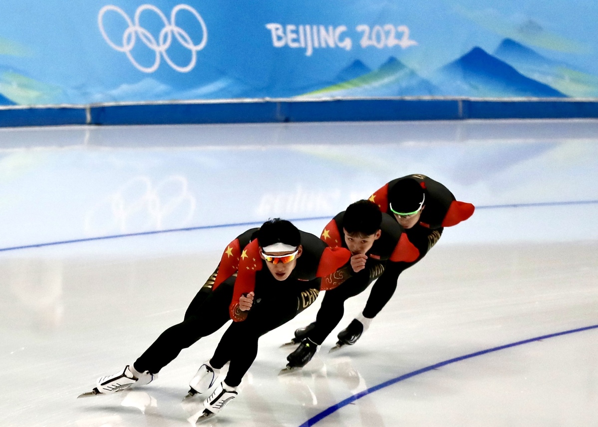 1月30日,在國家速滑館“冰絲帶”,中國運動員在進行賽前訓練。 中國日報記者 張威 攝