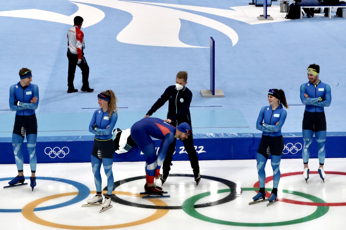 中國日報記者探訪國家速滑館“冰絲帶” 多國運動員進行賽前訓練